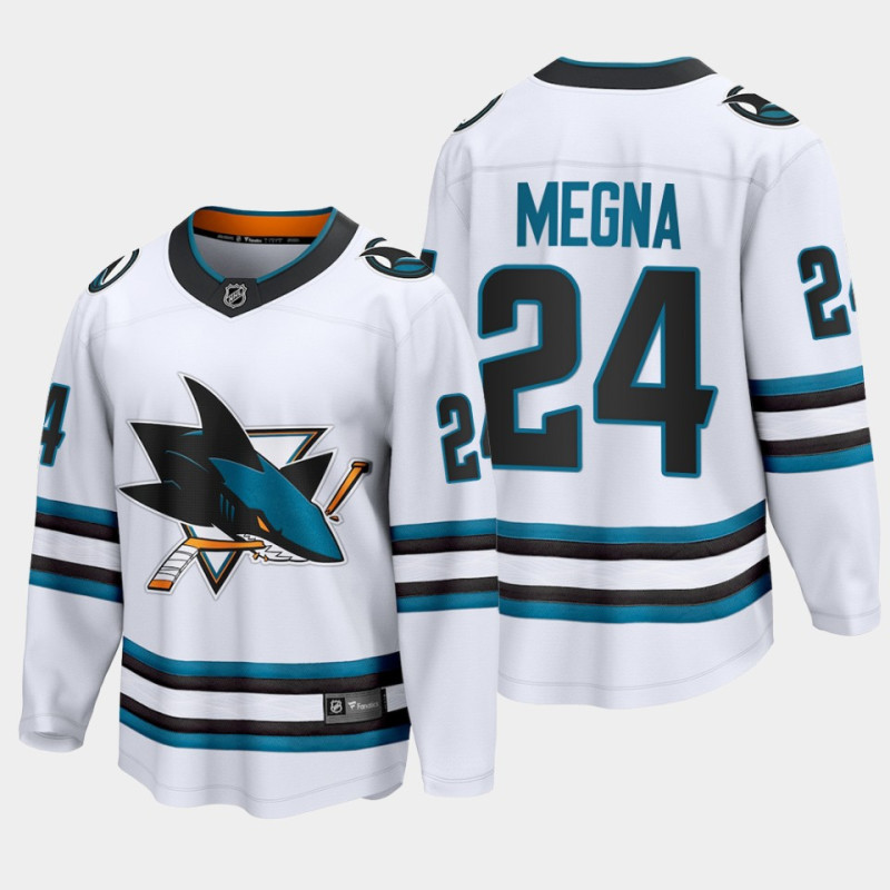 San Jose Sharks Jaycob Megna 2022-23 Away White #24 Jersey The Evolve